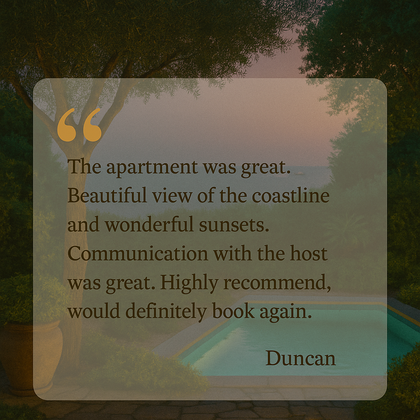 ✔ Sunny & Peaceful – Enjoy the Mediterranean flair in a tranquil setting.