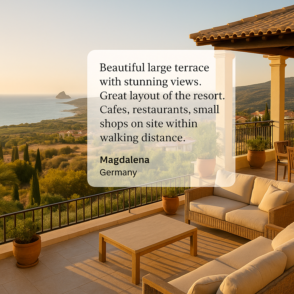 • Easy access to Paphos and Limassol for culture, shopping, and nightlife